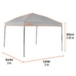 ✨ Características destacadas: ✅ Lona impermeable de 100% poliéster, ideal contra sol y lluvia ligera. ✅ Estructura de acero reforzado con tratamiento anticorrosivo para mayor durabilidad. ✅ Ajustable a 3 alturas para adaptarse a tus necesidades. ✅ Sombra amplia de 9 m² (3 × 3 m) perfecta para espacios abiertos. ✅ Compacto y fácil de instalar, armado en menos de 1 minuto con ayuda de otra persona.